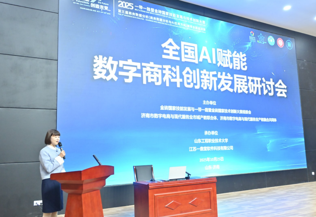 10月25日,全国AI赋能数字商科创新发展研讨会在山东工程职业技术大学开启。来自浙江大学、电子商务行指委、济南市域产教联合体代表、一鼎堂企业代表、全国100多所院校的教师共200多人参加了研讨会。