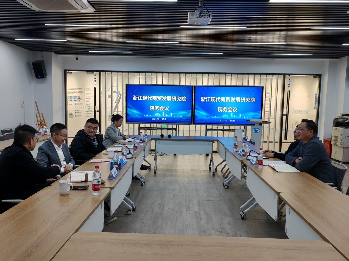 授牌仪式后,研究院召开院务会议,研讨2026年工作思路。研究院将与各共建单位协作,致力建设高水平商贸智库,为浙江发展贡献商贸智慧与力量。