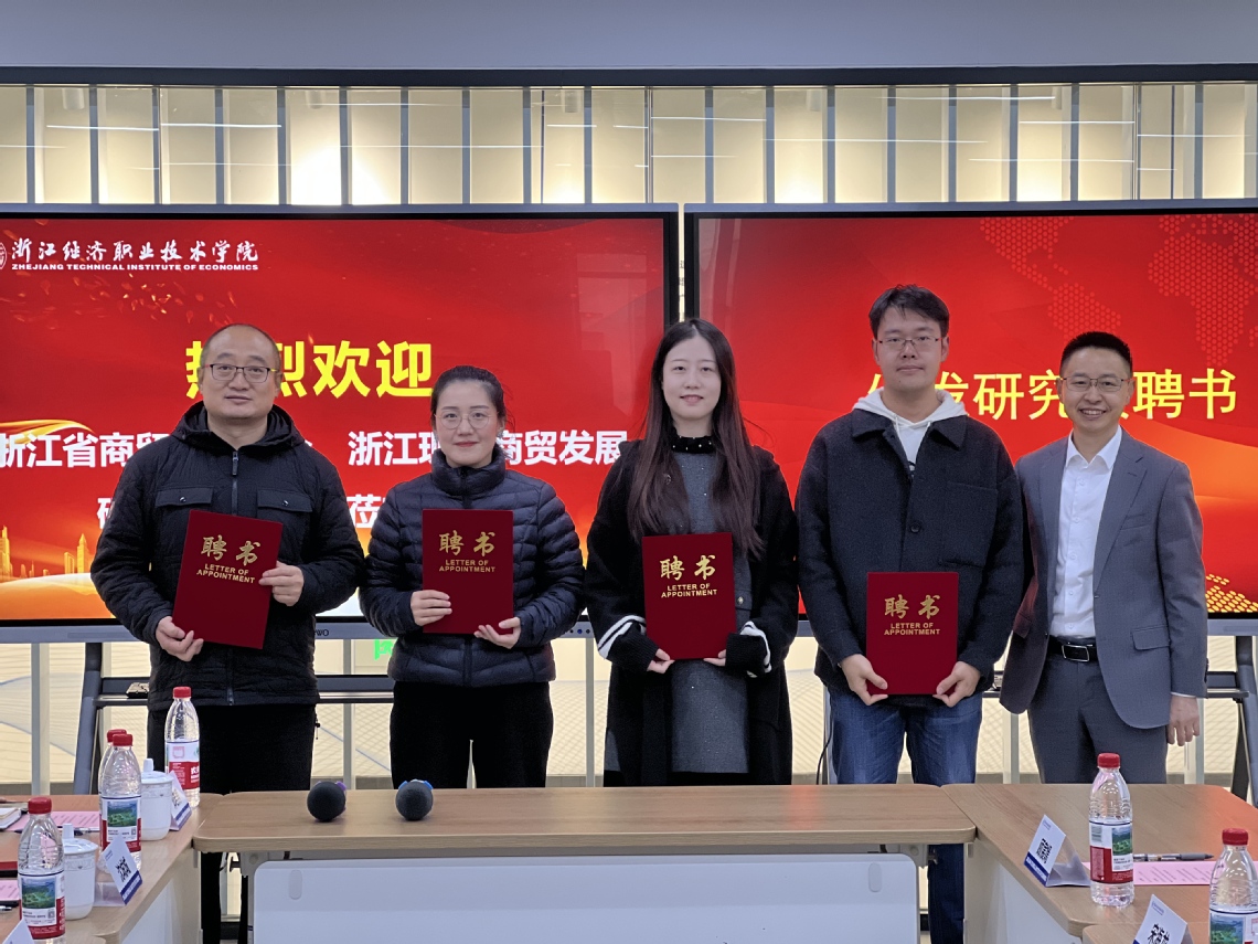 2025年12月2日,浙江现代商贸发展研究院授牌仪式在浙江经济职业技术学院数字商贸学院举行。浙江省商贸业联合会会长骆光林、浙江经济职业技术学院校长柯孔林、浙江现代商贸发展研究院理事长蔡建明、院长蒋斌等,以及数字商贸学院院长兼研究院常务副院长汪永华等出席。
