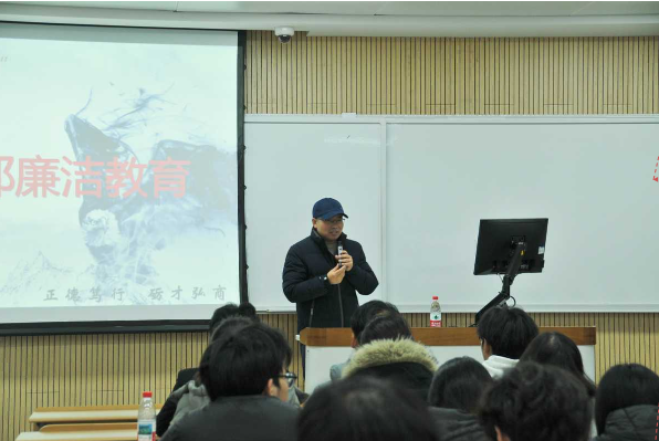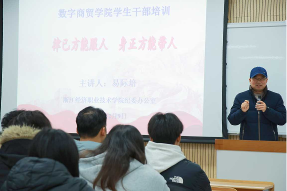 12月9日,数字商贸学院新一届学生干部廉洁教育在黄泽楼2302教室举行,全体团学干部干事参加培训。校纪委副书记、纪委办公室主任易际培为学生作廉洁讲座,数字商贸学院党总支副书记房栋、辅导员唐雪莲参加培训。