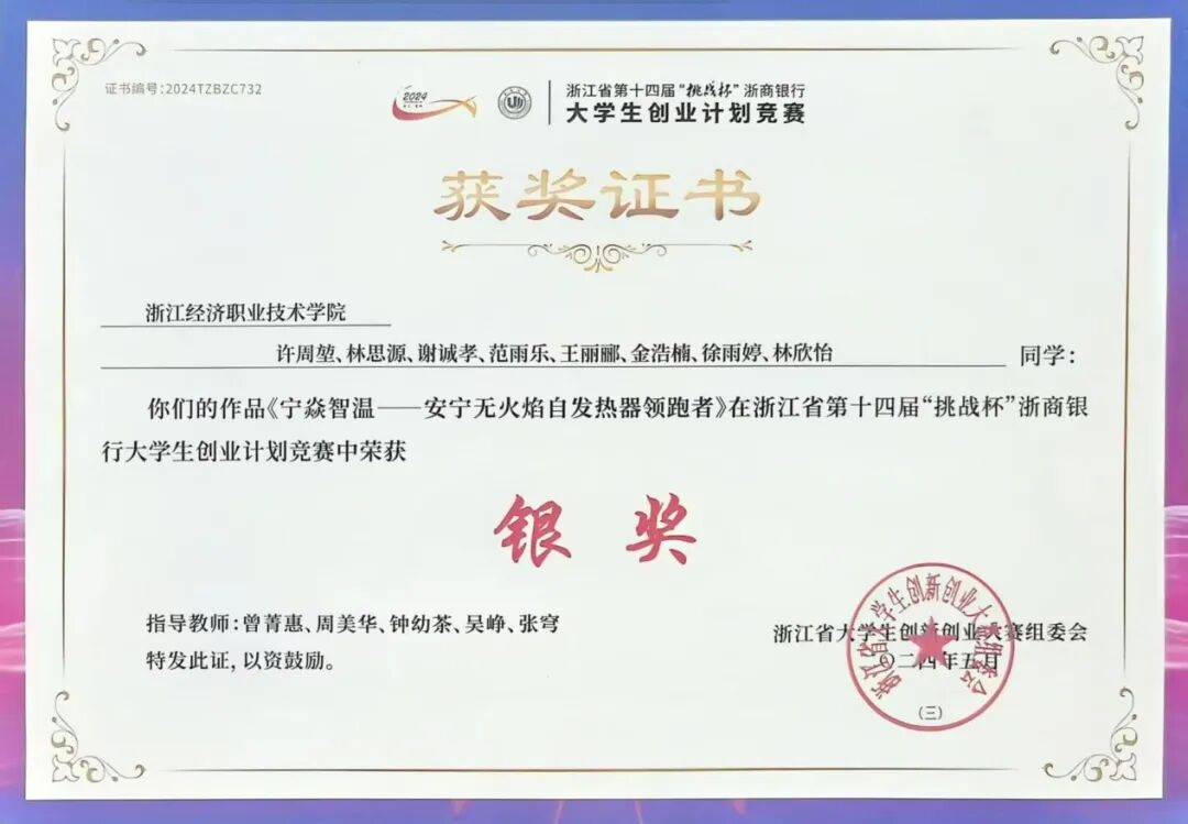 浙江省第十四届“挑战杯”浙商银行大学生创业计划竞赛获银奖