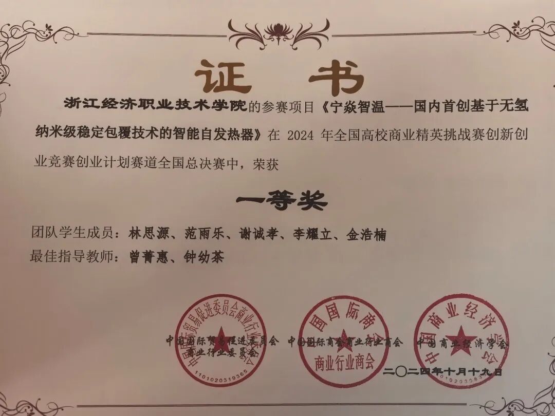 2024年全国高校商业精英挑战赛创新创业竞赛创业计划赛道全国总决赛获一等奖