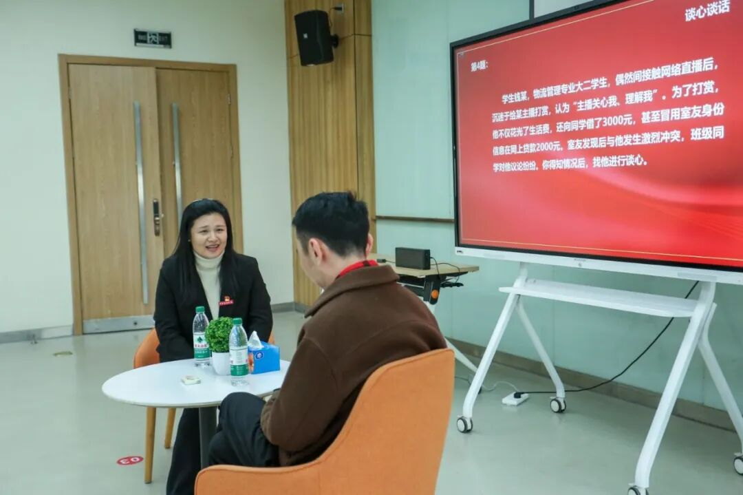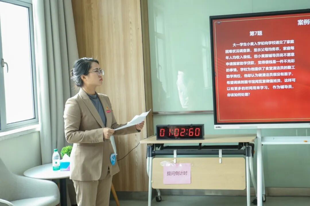 本次训练营设置理论测试、案例研讨、谈心谈话三大核心模块。闭卷理论测试夯实辅导员理论与业务基础;案例研讨以AB角互动问答形式,围绕学生工作重难点展开分组研讨;谈心谈话模拟真实场景,考验辅导员育人能力。训练营最终评选出优秀营员 6名,我院三位老师强势入围,占据半数席位,充分彰显了学院辅导员队伍过硬的专业素养和优良的育人风貌。