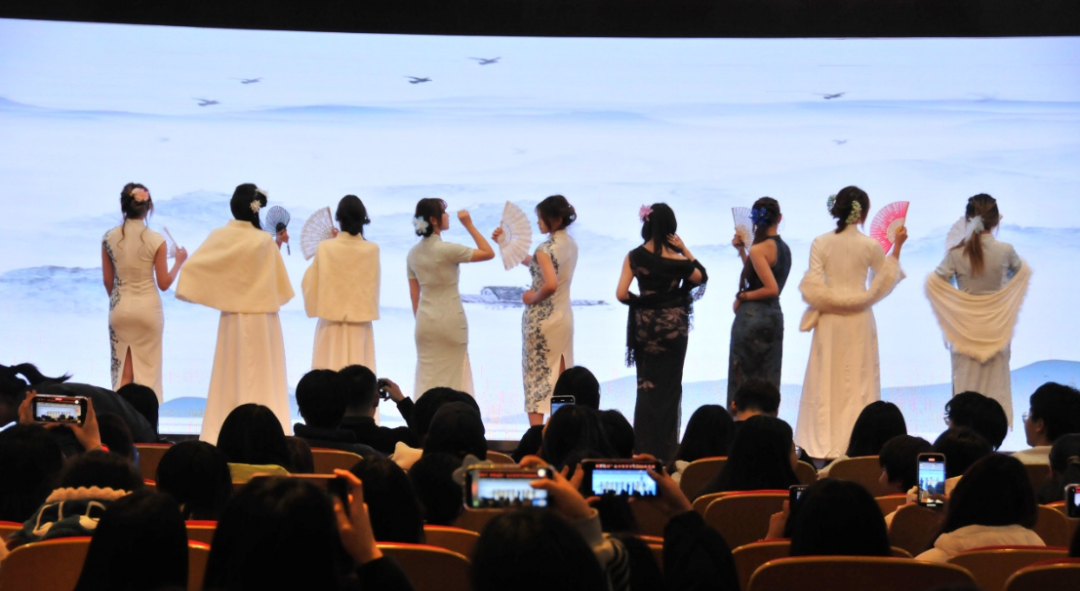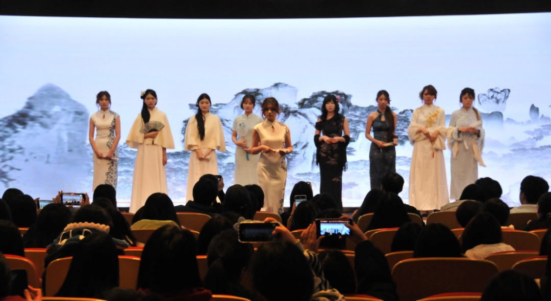 商贸礼仪队带来走秀表演,同学们身着传统特色服饰,迈着优雅的步伐款款走来,举手投足间尽显古典韵味与礼仪之美,惊艳全场。