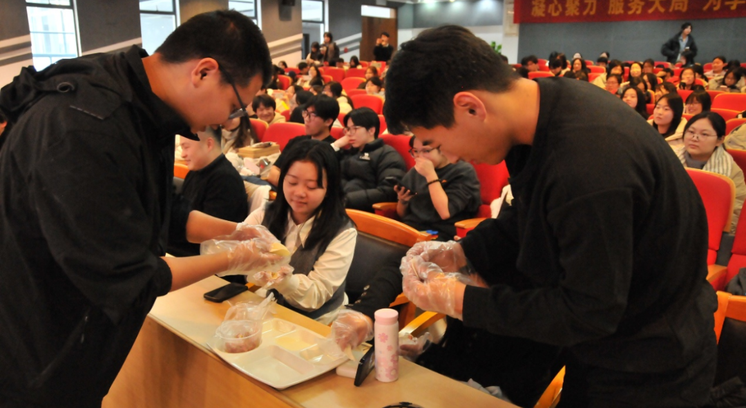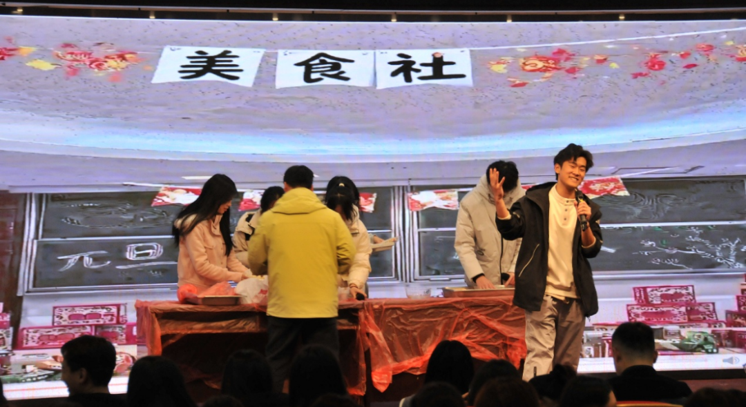 S205225商数班的同学们带来情景剧表演,金琪涵、陈贤良、姜洋瑞等演员通过生动的演绎,创造了独具特色的“国潮饺子”,通过邀请现场观众共同参与包饺子的环节,让现场笑声不断,掌声雷动。