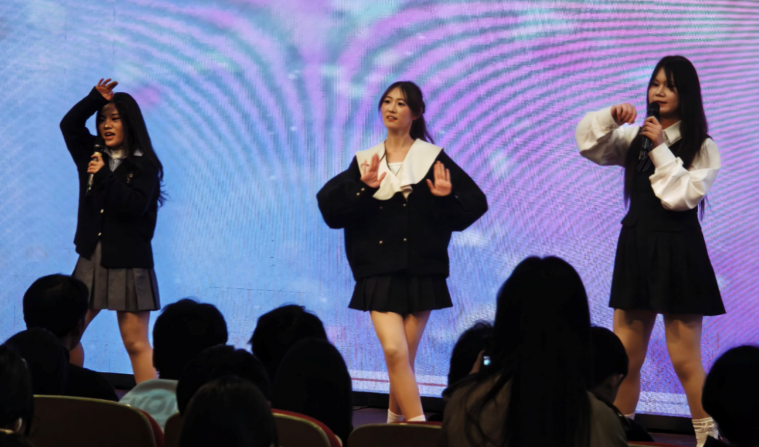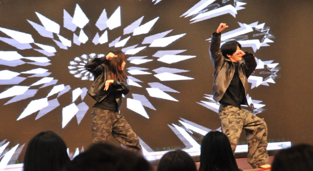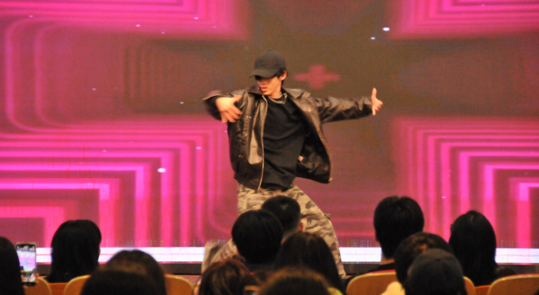 S204325跨境班的徐郡超带来唱跳表演,独特的嗓音与动感的舞步,将歌曲的韵律与情感展现得淋漓尽致,收获阵阵掌声。