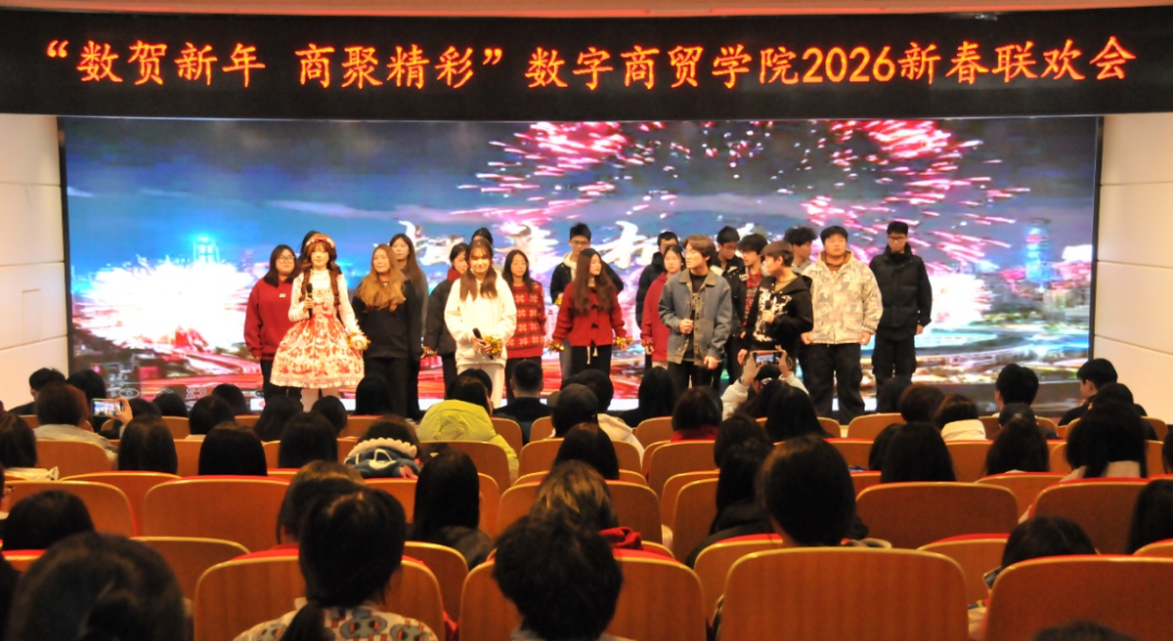 锣鼓声声辞旧岁,歌舞翩翩迎新春。2025年12月28日,浙江经济职业技术学院行政楼三楼报告厅内欢歌笑语、暖意融融,2026年数字商贸学院新春联欢会在万众期待中圆满举办。商贸学子与老师们同台献艺,用多样的表演形式勾勒新年美好图景,为现场观众带来了一场精彩纷呈的视听盛宴。