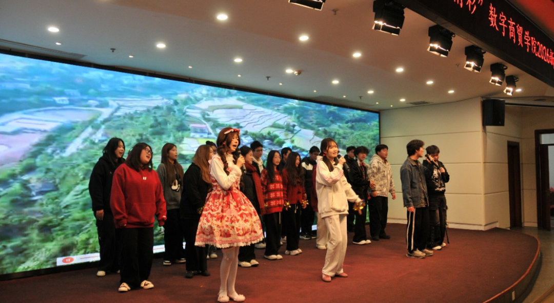 S202325电商班的同学们合唱压轴,班级同学组成的合唱小队用嘹亮的歌声、真挚的情感,唱出了“相亲相爱一家人”的温暖主题,为整场联欢会画上圆满的句号。